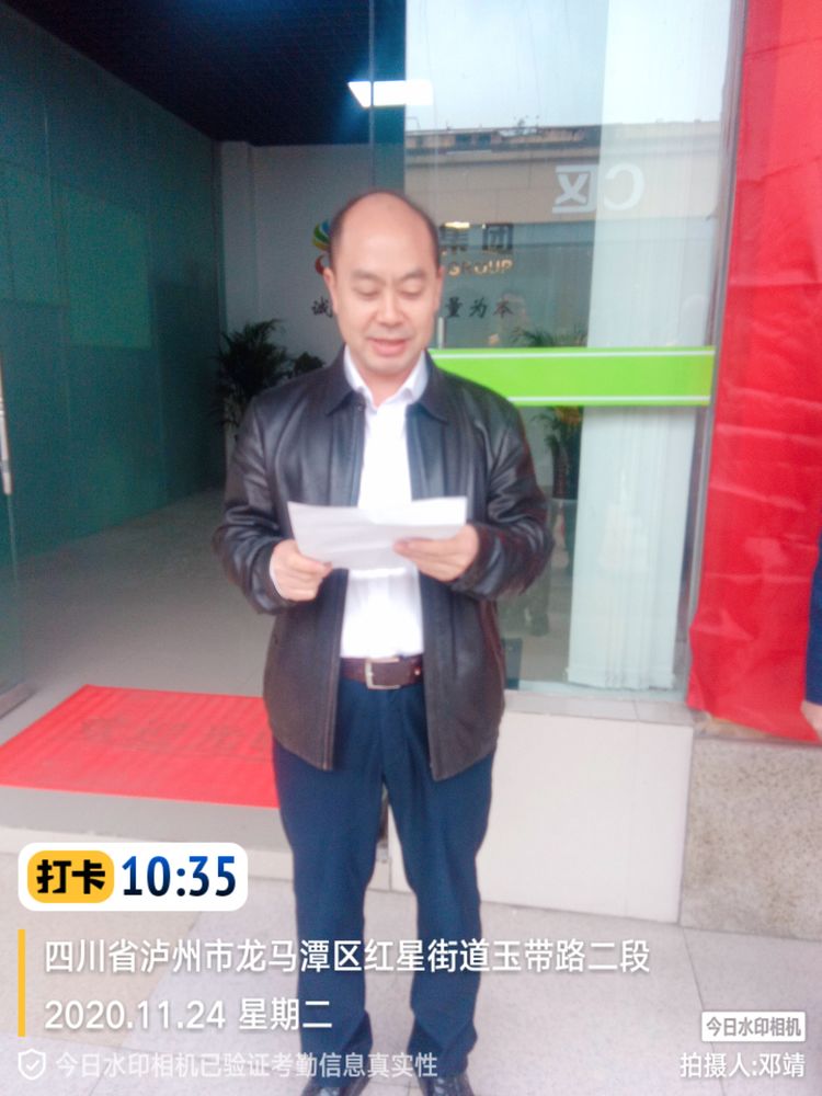 揭牌儀式前,項(xiàng)目經(jīng)理張明強(qiáng)致辭,回顧了從7月份開始接管后的重大事件,感謝所有員工的辛勞付出,他表示在今后的工作中,我們要更加努力,認(rèn)真工作,服從區(qū)委區(qū)政府、業(yè)主單位各級(jí)領(lǐng)導(dǎo)的調(diào)配,熟練掌握操作技巧,提高安全意識(shí),把我們龍馬潭區(qū)的環(huán)衛(wèi)管理工作做得更好,用認(rèn)真工作的態(tài)度,用我們的實(shí)際行動(dòng),為營造優(yōu)美、整潔、和諧的龍馬潭區(qū)城區(qū)環(huán)境而努力,提升城市品位。為公司在四川的發(fā)展奠定堅(jiān)實(shí)的基礎(chǔ)。