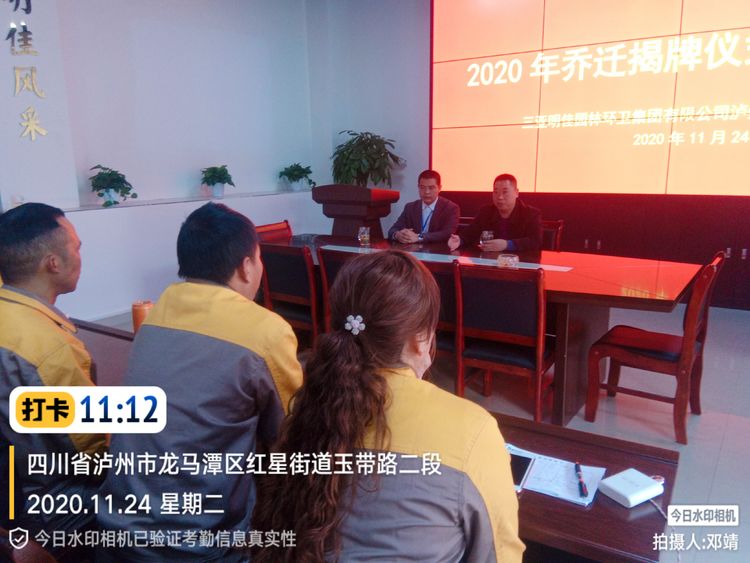 接著,到場嘉賓人大主任詹萬勇講話,向明佳集團(tuán)瀘州分公司全體員工表示親切的慰問,希望明佳集團(tuán)瀘州分公司在新的辦公場地,一如既往地發(fā)揮一流的管理水平,繼續(xù)提供優(yōu)質(zhì)的服務(wù),為廣大龍馬潭區(qū)市民服務(wù),提高環(huán)境衛(wèi)生管理服務(wù)水平,創(chuàng)建良好的服務(wù)平臺(tái),營造干凈整潔的市容環(huán)境、為引領(lǐng)時(shí)尚的現(xiàn)代文明增光添彩。