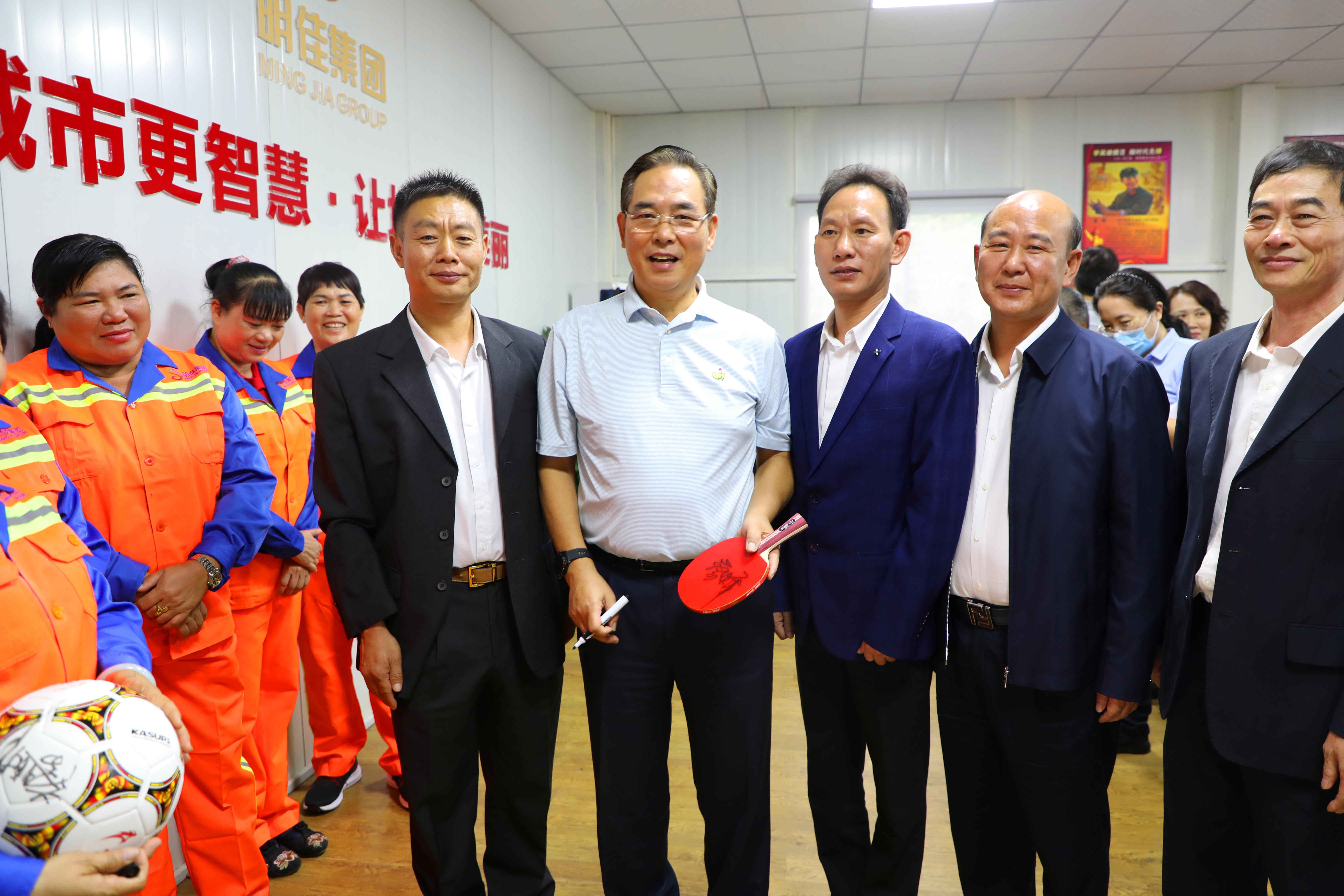座談會(huì)結(jié)束后,明佳集團(tuán)一些職工表示非常喜愛(ài)乒乓球及足球運(yùn)動(dòng),一直都是蔡副主席的粉絲,希望獲得蔡振華副主席的親筆簽名。蔡副主席非常親切地為他們簽名,并與之合影留念。