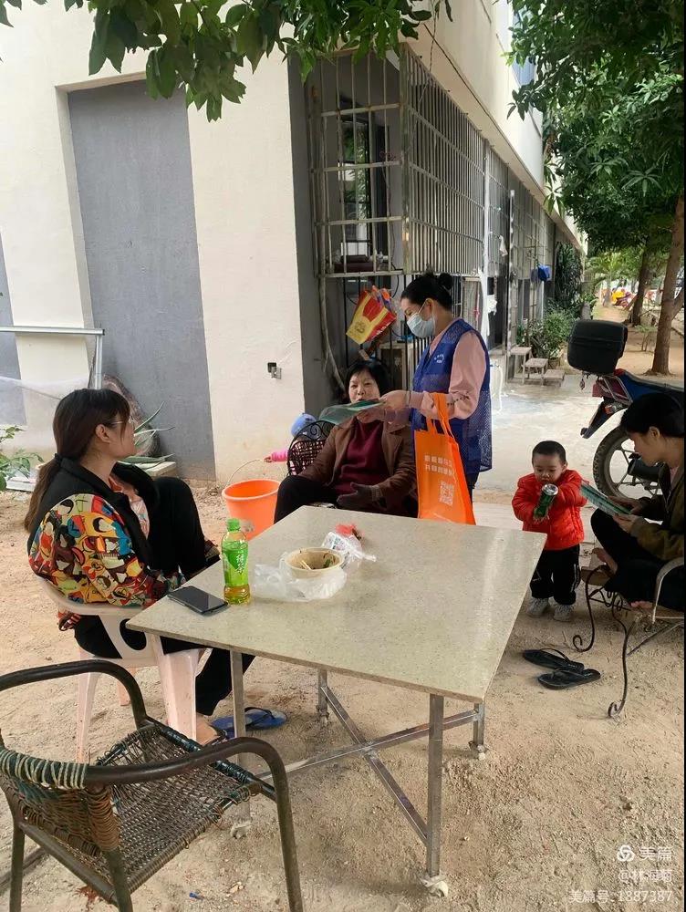 巾幗文明崗小分隊深入社區(qū)分發(fā)垃圾分類手冊并認(rèn)真講解。