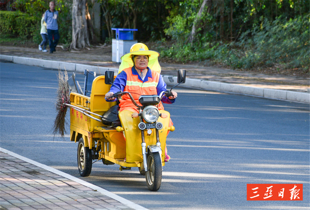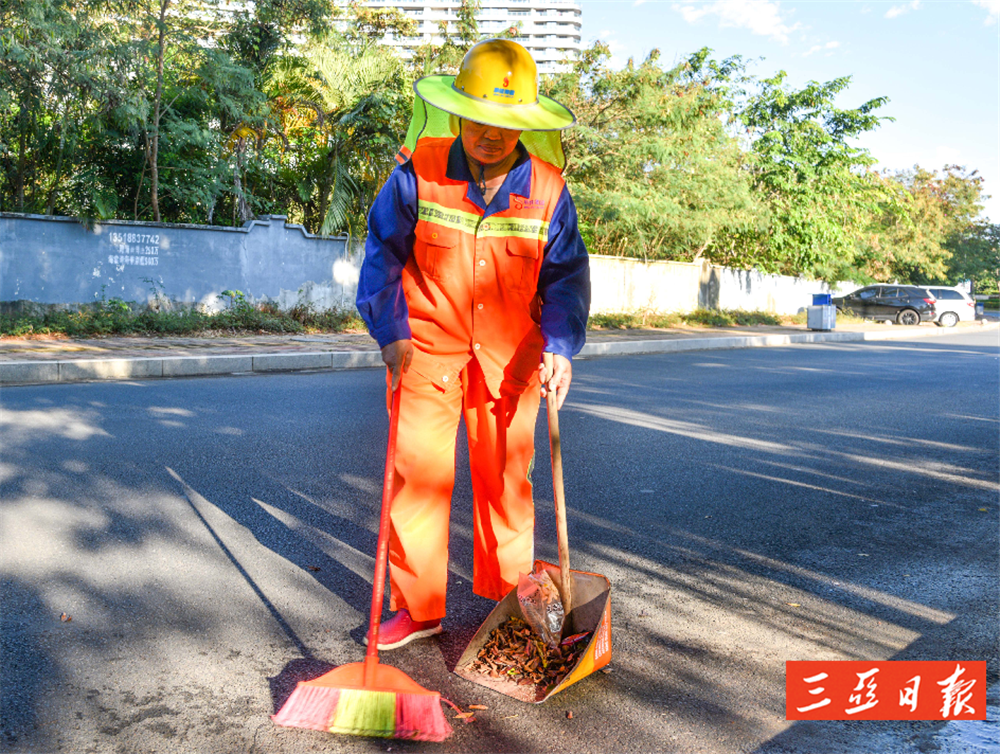 今年47歲的藍(lán)亞燕,是鹿回頭路段的環(huán)衛(wèi)工人。從2010年5月11日那天算起,藍(lán)亞燕在三亞做環(huán)衛(wèi)工作已整整3928天,這一做就是10年有余。