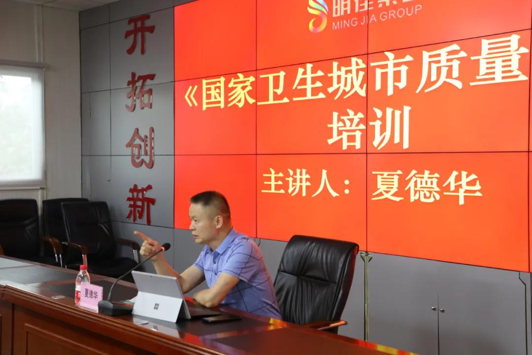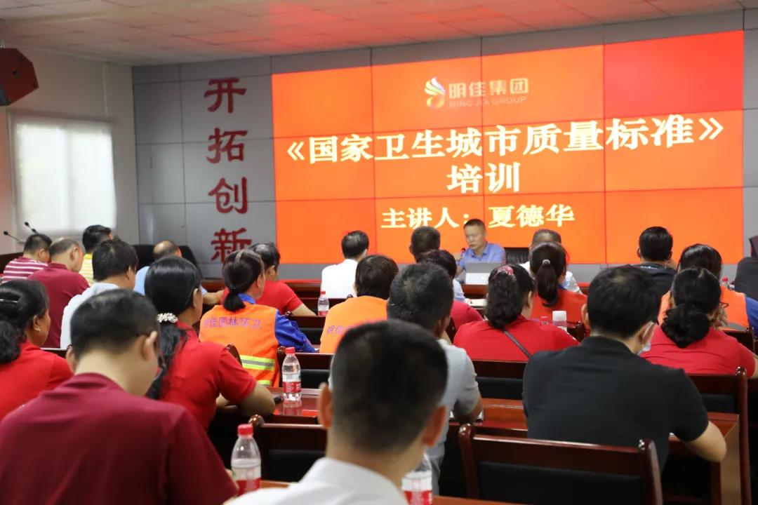 此次培訓(xùn)分三項內(nèi)容:一是總裁陳云分析國家衛(wèi)生城市復(fù)審形勢;二是夏德華調(diào)研員進行《國家衛(wèi)生城市質(zhì)量標(biāo)準(zhǔn)》培訓(xùn);三是副總羅京鮮結(jié)合公司現(xiàn)狀進行講解。