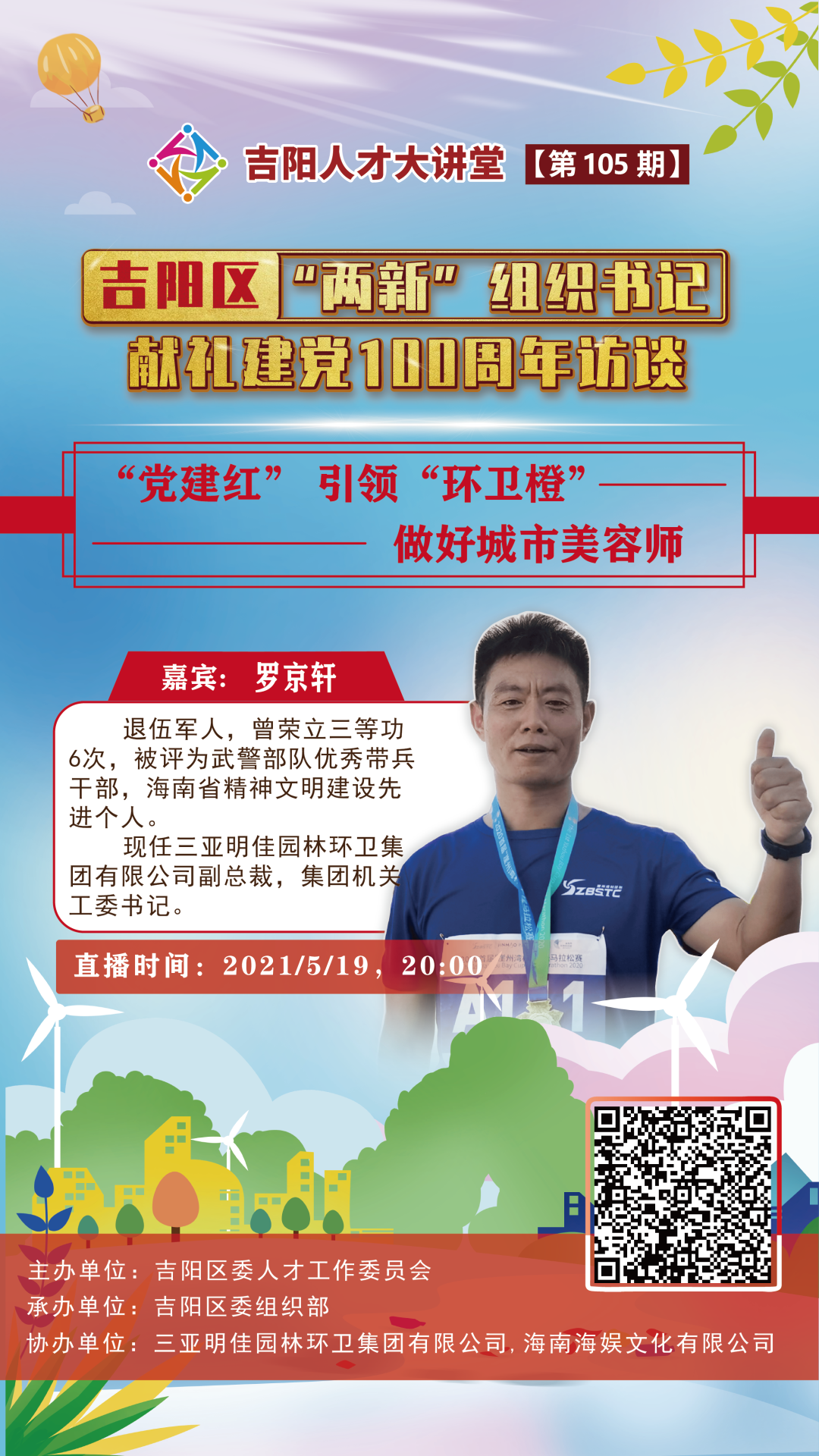 近日,第105期吉陽人才大講堂邀請到三亞明佳園林環(huán)衛(wèi)集團(tuán)有限公司副總裁、集團(tuán)機(jī)關(guān)工委書記羅京軒分享以“黨建紅”引領(lǐng)“環(huán)衛(wèi)橙”,助力城市清潔的好經(jīng)驗、好做法,直播吸引近25.48萬人次在線觀看,其中不少網(wǎng)友為來自全國各地的環(huán)衛(wèi)工人。
