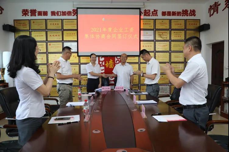 7月15日,《企業(yè)工資專(zhuān)項(xiàng)集體合同》簽訂儀式順利舉行。公司總裁陳云、工會(huì)主席高斐斐等6名協(xié)商代表參加了本次簽訂儀式。陳云表示,公司工會(huì)在開(kāi)展此次集體協(xié)商過(guò)程中,能夠以企業(yè)職工的意愿和需求為出發(fā)點(diǎn),以切實(shí)維護(hù)職工權(quán)益為目標(biāo),積極引導(dǎo)職工做企業(yè)發(fā)展的主人,不僅為企業(yè)和職工協(xié)商共謀搭建了平臺(tái),還為企業(yè)注入了活力和生機(jī),實(shí)現(xiàn)了企業(yè)和職工雙方的共贏。