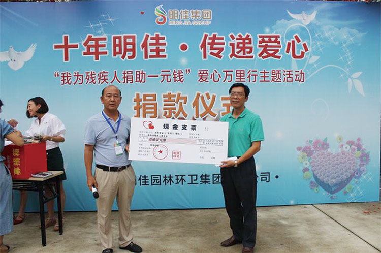 三亞明佳園林環(huán)衛(wèi)集團作為海南環(huán)衛(wèi)行業(yè)的龍頭企業(yè),10年來為三亞城鄉(xiāng)面貌改變做出重要貢獻的同時,近年來也積極參與為貧苦地區(qū)捐資修路、為困難社區(qū)群眾捐獻愛心物資、精準扶貧、幫扶殘疾人等各項社會公益事業(yè)近300萬元,用自己的實際行動,踐行“有愛心,懂回報”做良心企業(yè)的承諾。